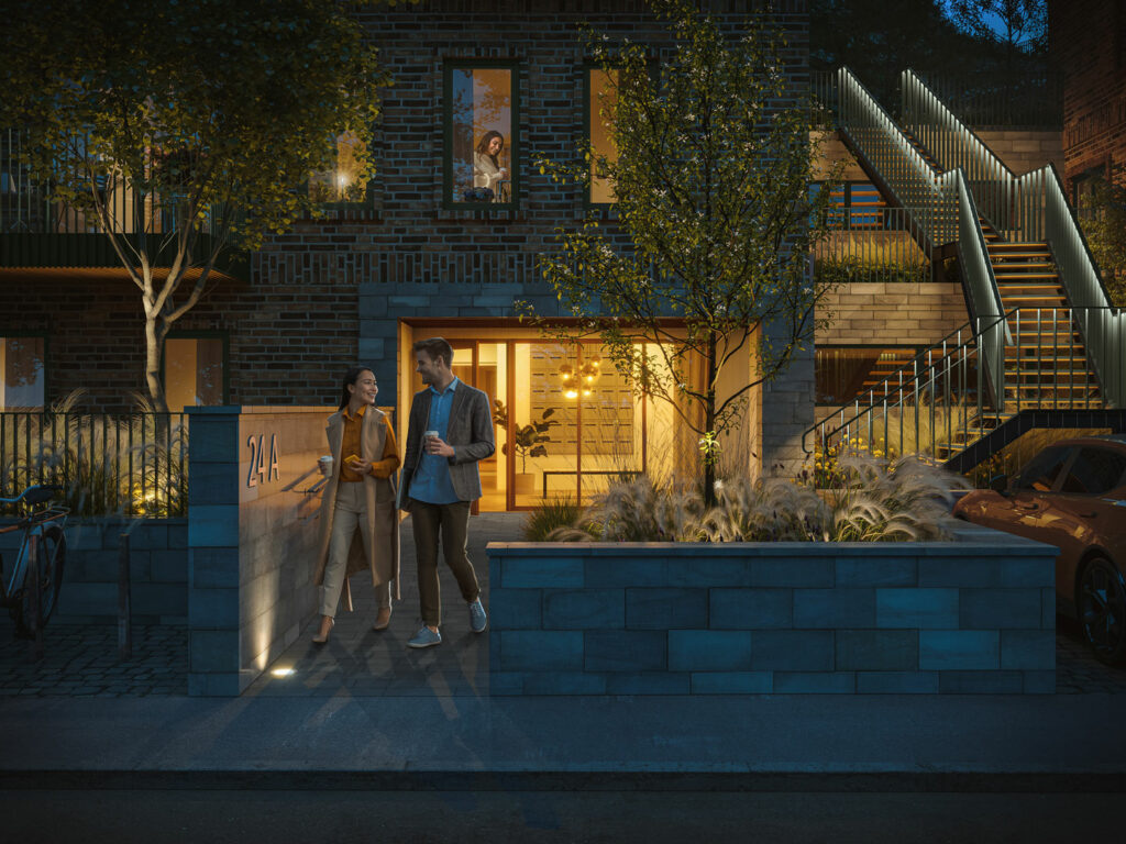 De 46 lägenheterna är fördelade på tre hus och rymmer allt från smarta ettor och tvåor, flexibla treor och fyror samt spektakulära femrummare med stora uteplatser. Alla med planlösningar unika i sitt slag.