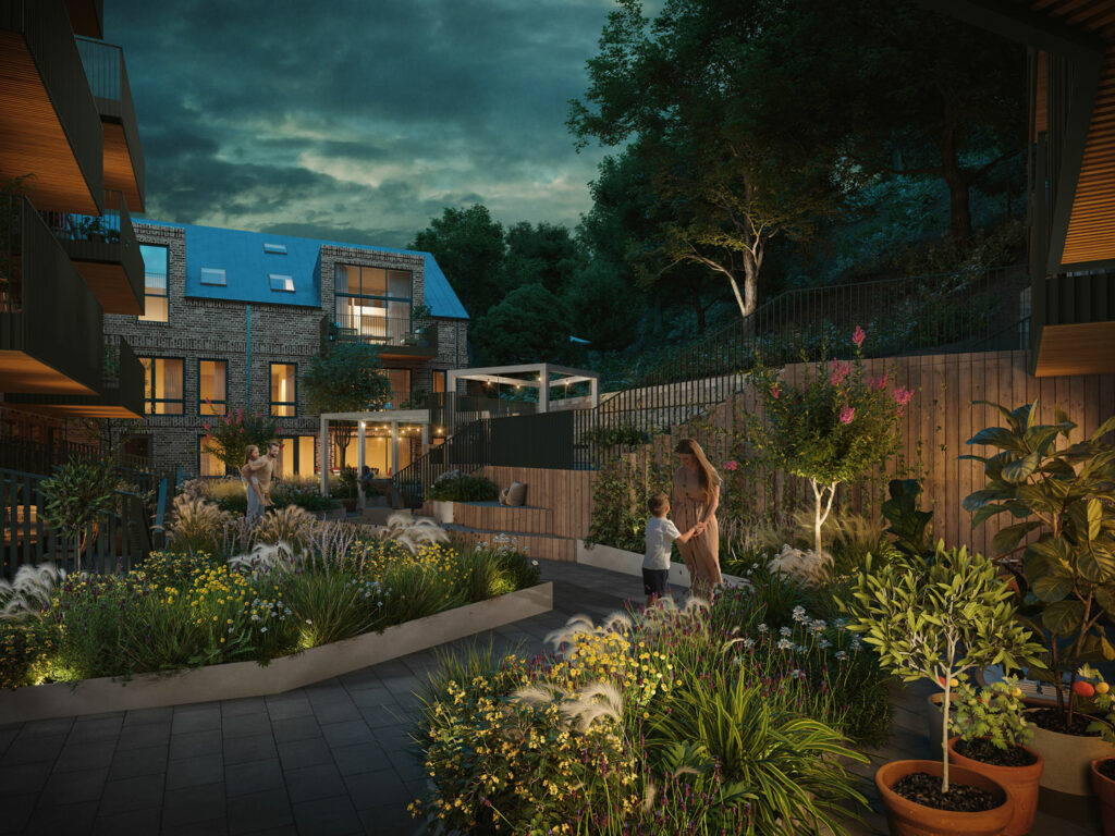 Vi har ett fantastiskt team bakom projektet och tillsammans skapar vi nu 46 unika hem på denna vackra naturtomt i Örgryte.
