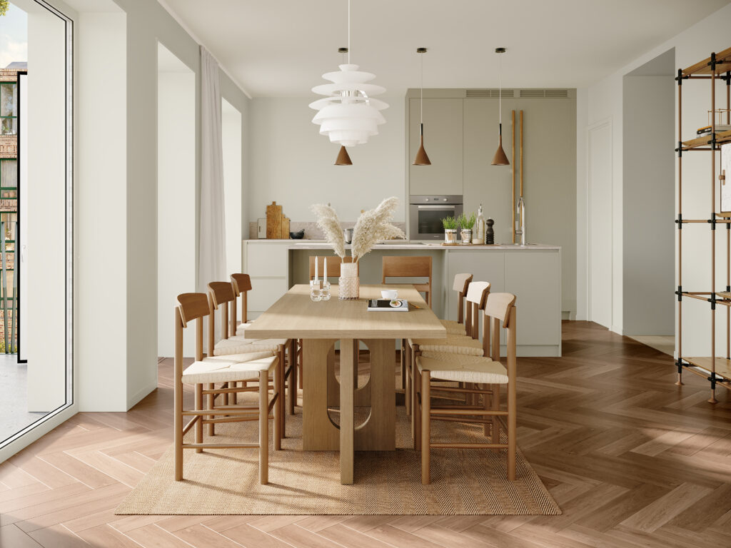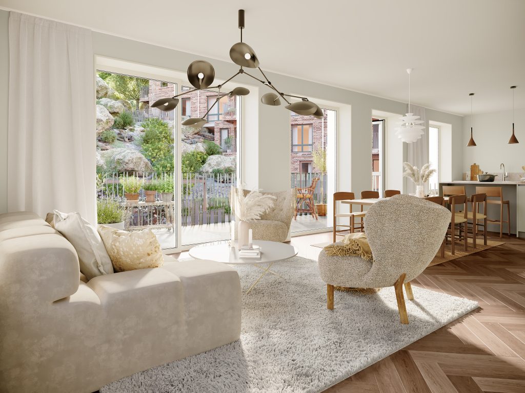 46 moderna bostadsrätter. 46 olika planlösningar. Alla med balkong, terrass eller uteplats i någon form. Gemensamt är den tilltagna takhöjden (från 2.60 upp till 5.90) och stora fönsterpartier med låg bröstning som skapar ett fantastiskt ljusinsläpp. Interiören är vald med omsorg för detaljer och kvalité och arkitekturen utformad med hänsyn till både miljön runtomkring och för att optimera vardera lägenhets planlösning. Vissa lägenheter har möblerbara loft, en lägenhet är ett klassiskt townhouse i två våningar. Ingen lägenhet är den andra lik frånsett de genomgående materialvalen av högsta klass. Köksinredning från Kvänum, vitvaror från Miele, innerdörrar från Ekstrands och fiskbensmönstrad ekparkett från designkollektionen Segno är ett utdrag från interiörlistan som du hittar i sin helhet i vår bostadsväljare.